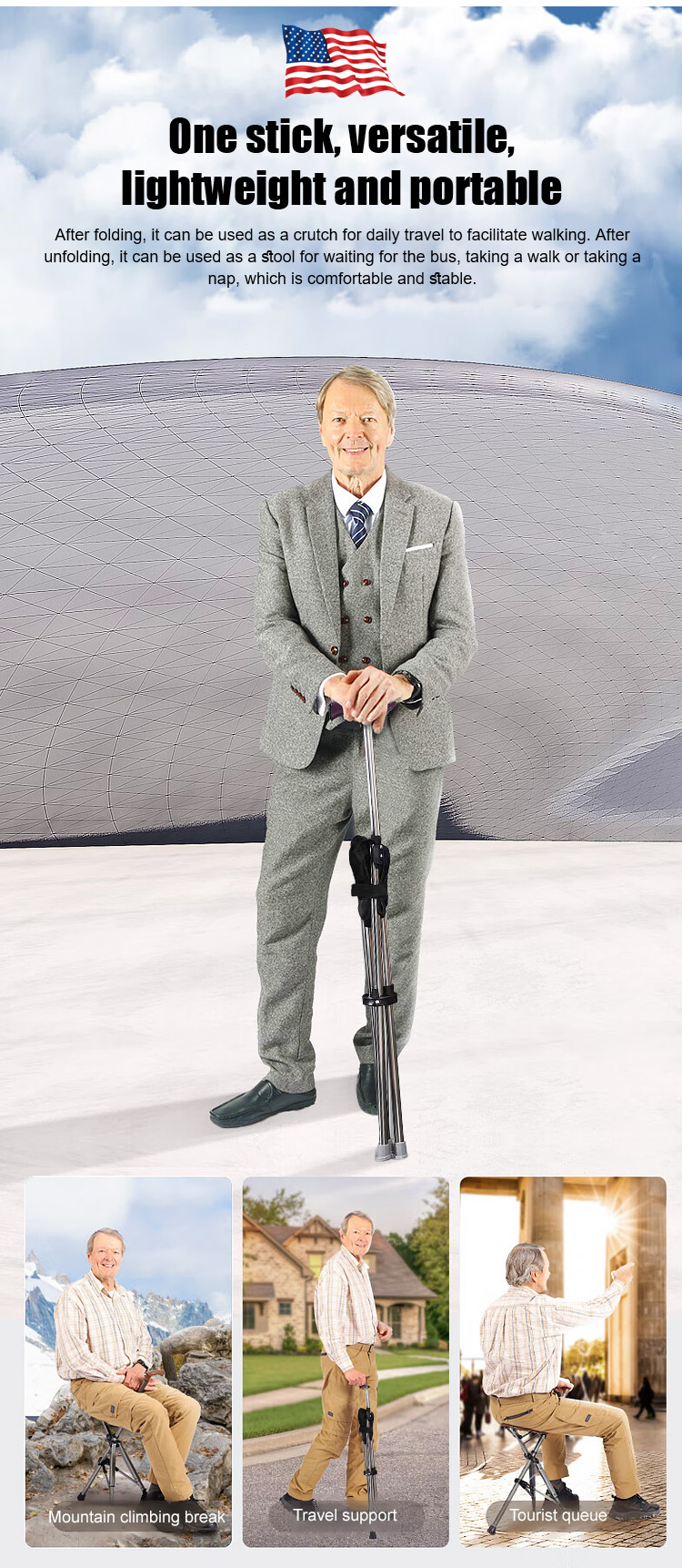 🔥No need to search for a bench; with just a press, a sturdy walking stick instantly transforms into a stable seat. Whether you're strolling in the park, shopping at the market, or exercising outdoors in the morning, you can sit down and rest when you're tired, enjoying a moment of freedom and relaxation anytime, anywhere.🥰